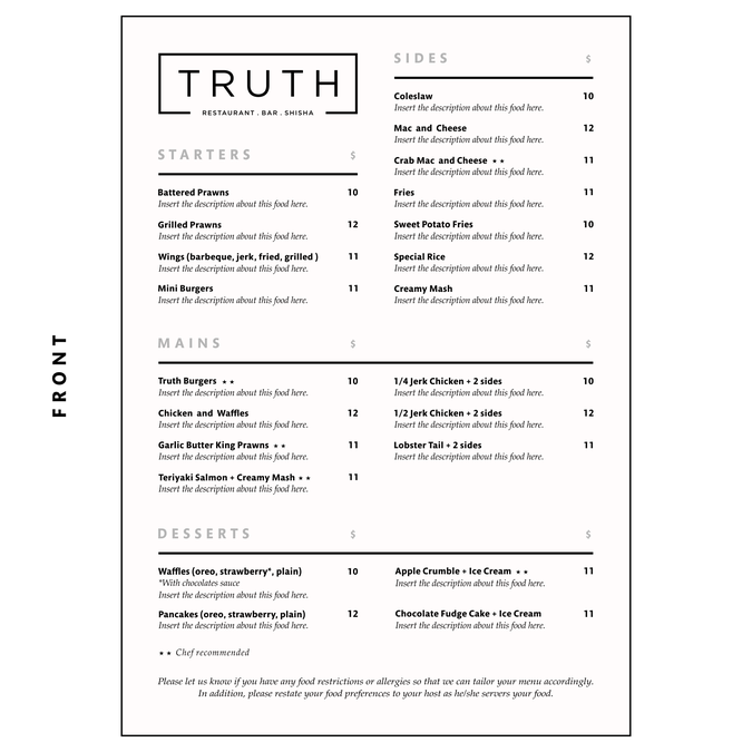 New Soul Food Restaurant And Bar Menu Speisekarten Wettbewerb